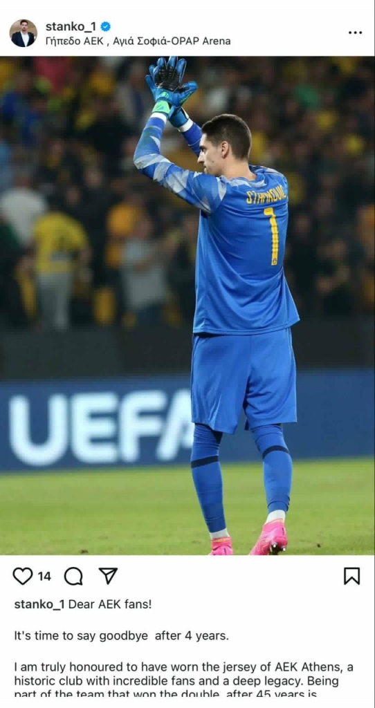 Τώρα, έχει έρθει η ώρα για μένα να αγκαλιάσω μια νέα πρόκληση και να συνεχίσω το ταξίδι μου σε ένα άλλο κλαμπ. Καθώς κάνω αυτό το επόμενο βήμα, θέλω να εκφράσω τη βαθύτατη ευγνωμοσύνη μου σε όλους στην ΑΕΚ, τους συμπαίκτες μου που είχα, τη διοίκηση και τους εκπληκτικούς υποστηρικτές που στάθηκαν δίπλα μας σε κάθε βήμα.