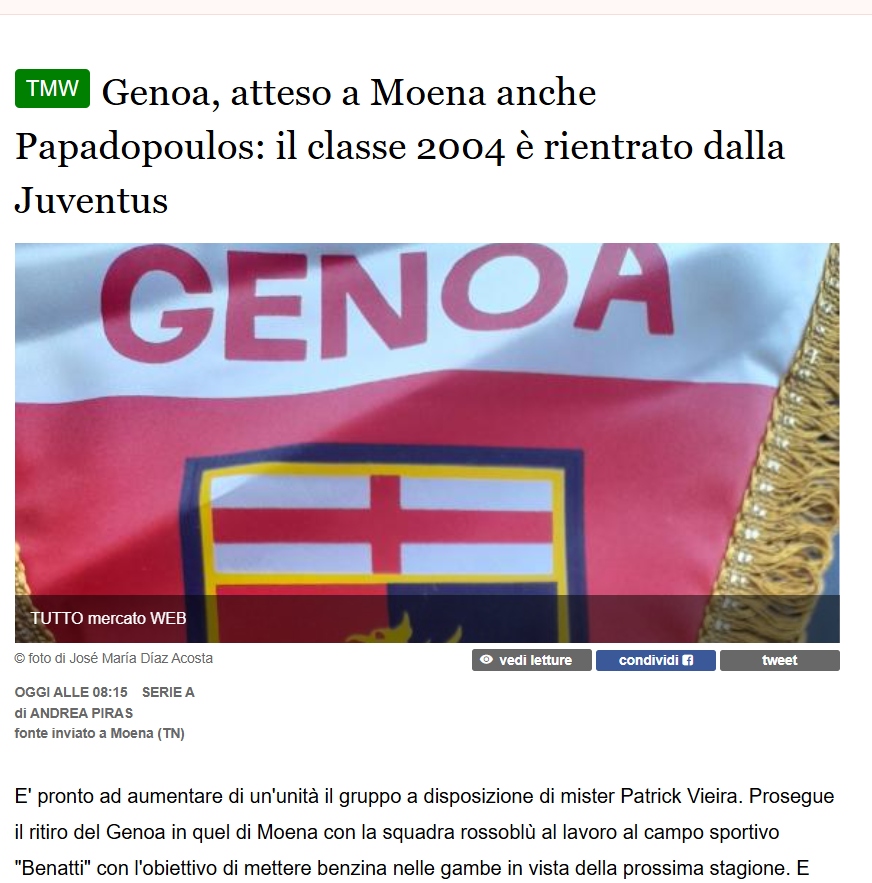 Ο νεαρός Έλληνας χαφ θα πάρει τώρα την ευκαιρία του υπό τις οδηγίες του Βιεϊρά, με στόχο να διεκδικήσει θέση στο ρόστερ της Τζένοα ενόψει της νέας αγωνιστικής περιόδου στη Serie A.