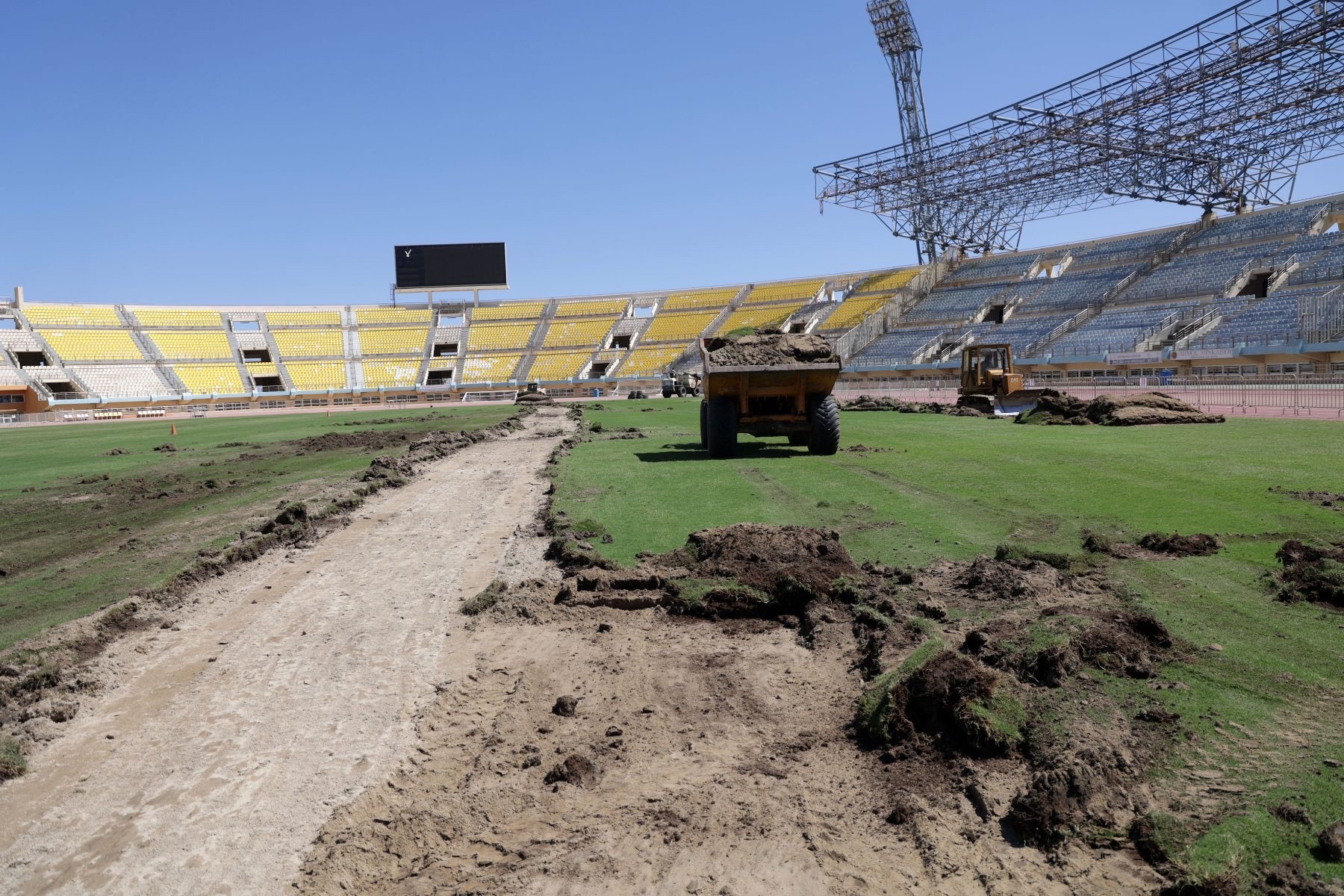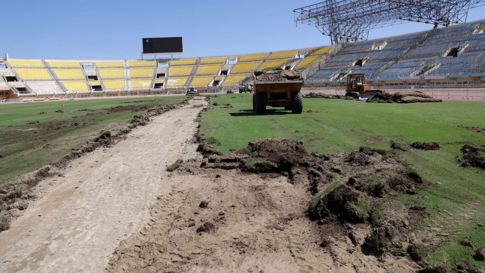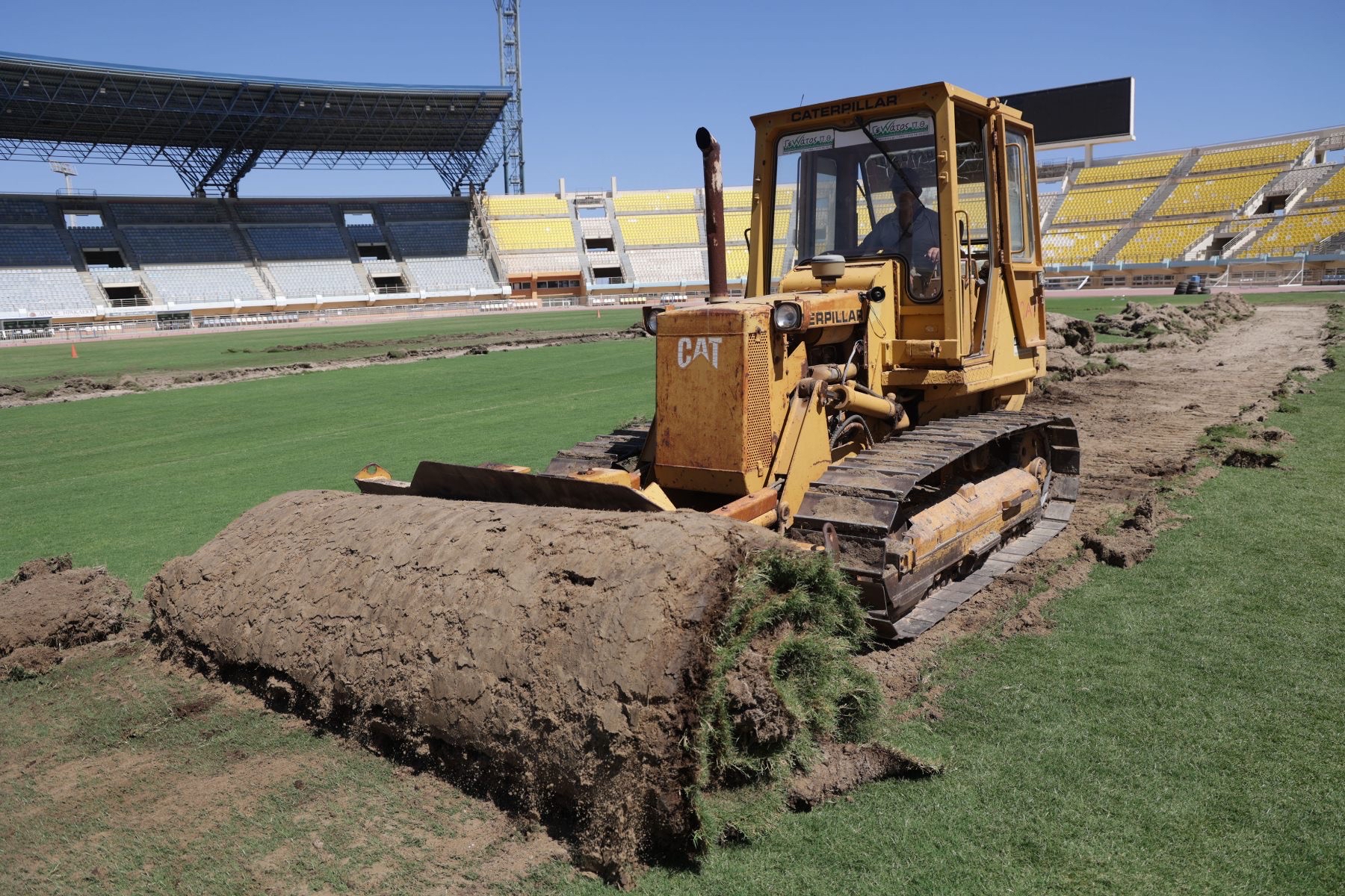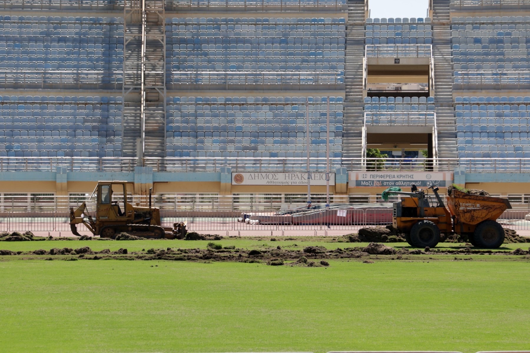 Ήδη από σήμερα, συνεργεία έχουν ξεκινήσει τις εργασίες ξηλώματος του παλιού αγωνιστικού τάπητα, προκειμένου να τοποθετηθεί νέος, σύγχρονος και πιστοποιημένος χλοοτάπητας, που θα πληροί τις προδιαγραφές της Super League.