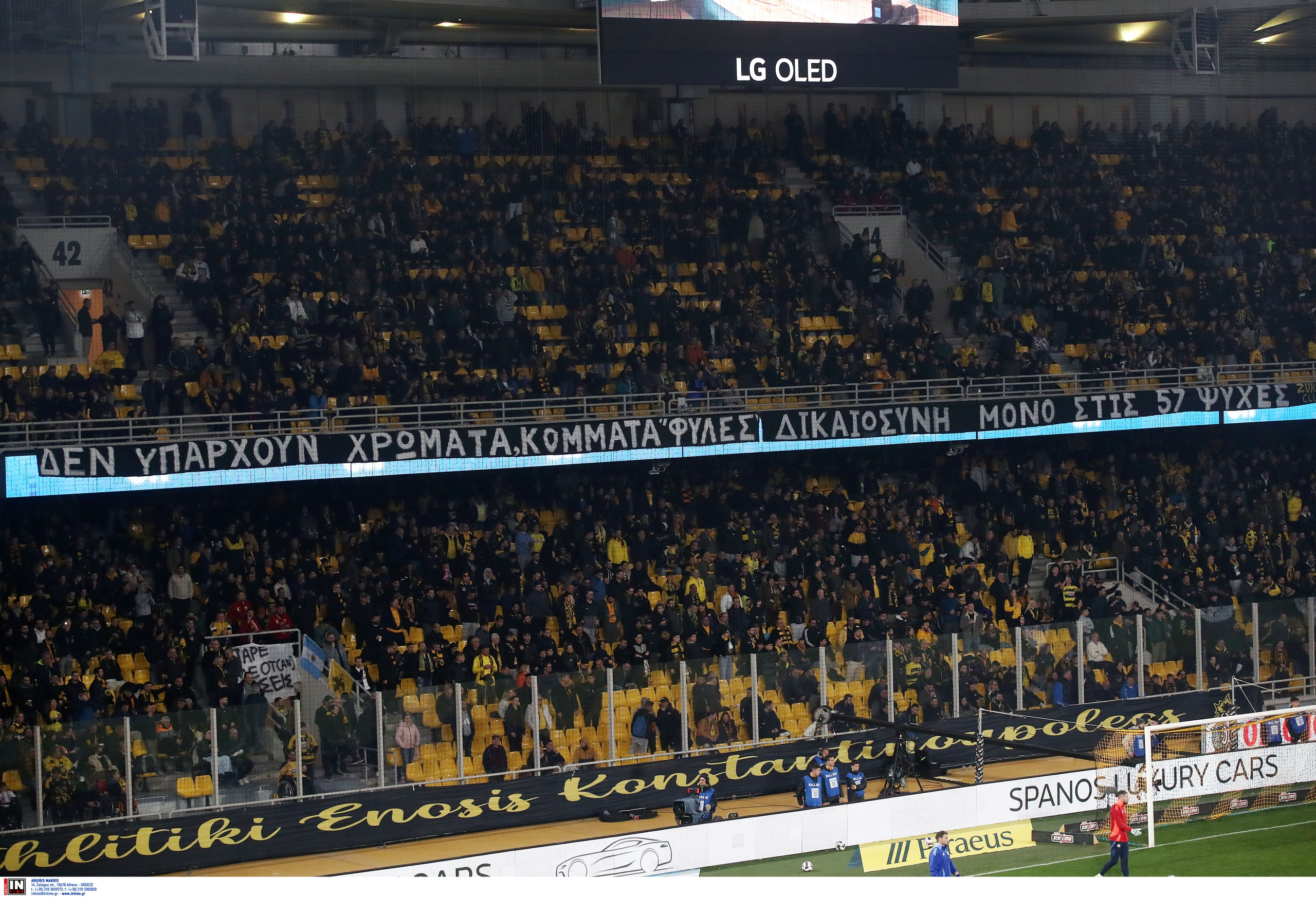 Δύο ημέρες μετά τις μεγαλειώδεις πορείες σε όλη τη χώρα, όπου εκατομμύρια πολίτες απαίτησαν δικαιοσύνη για τα 57 θύματα της τραγωδίας των Τεμπών, οι οπαδοί της ΑΕΚ ανάρτησαν δύο μεγάλα πανό στην «Opap Arena», λίγο πριν από το ντέρμπι με τον Ολυμπιακό για την 25η αγωνιστική.
