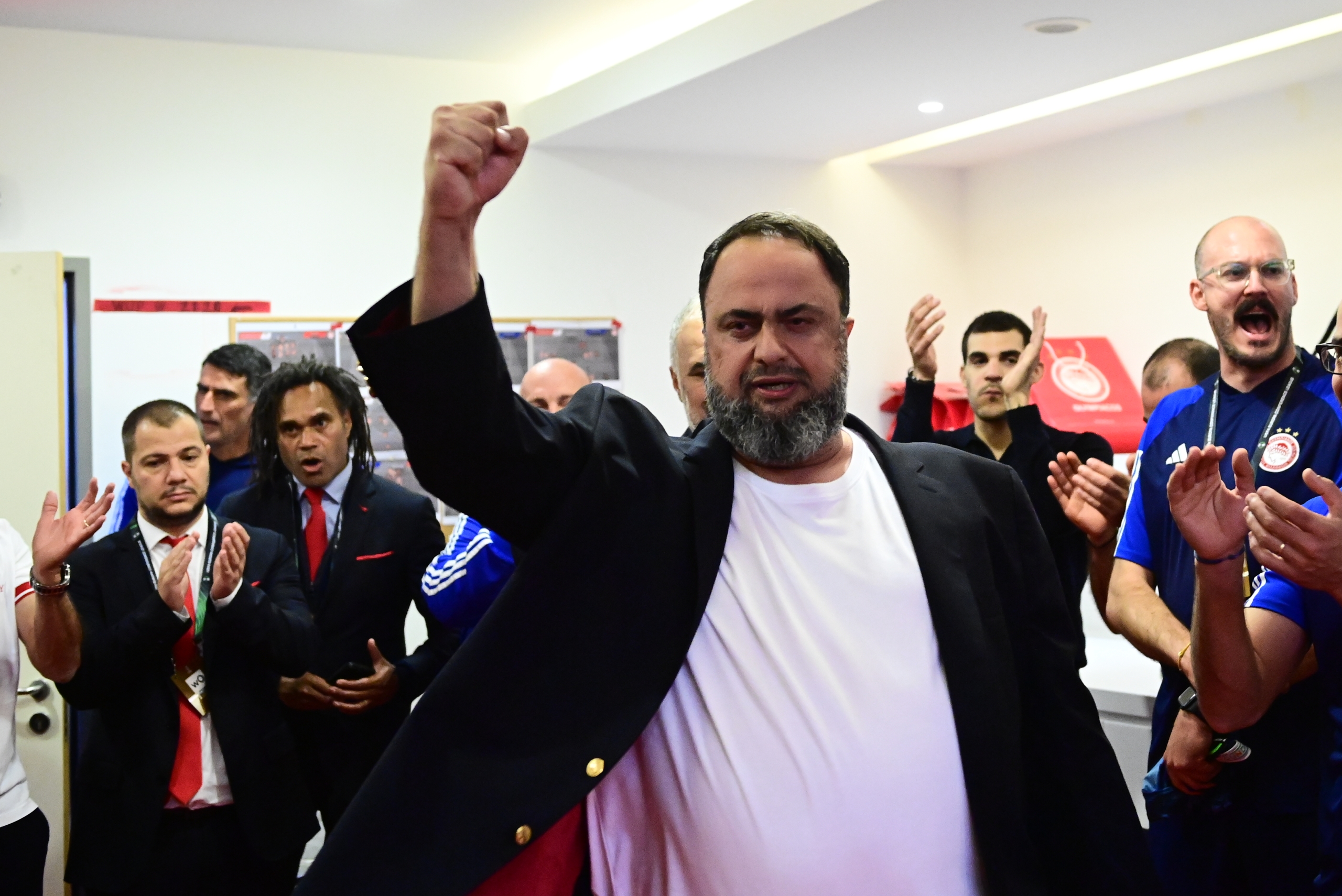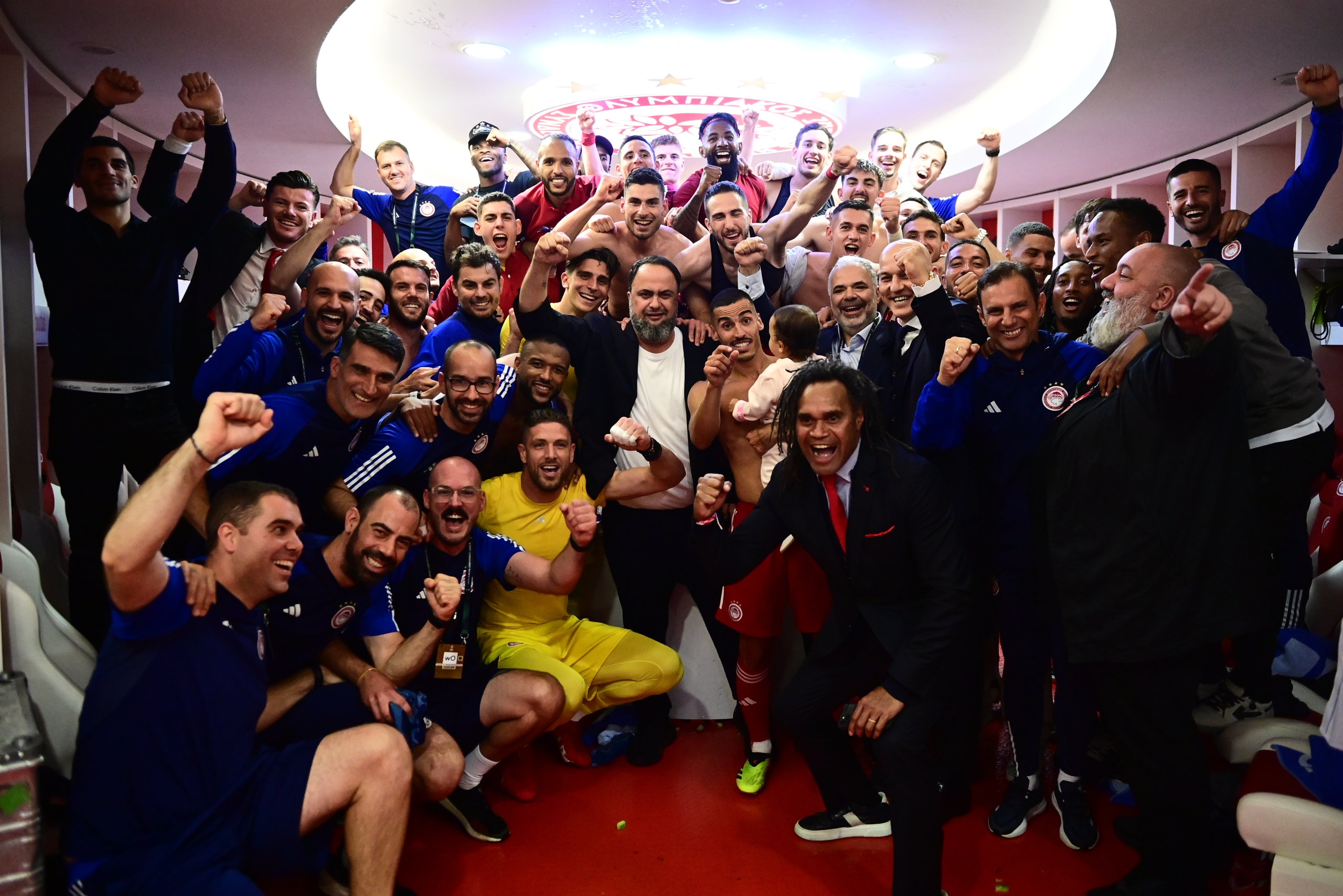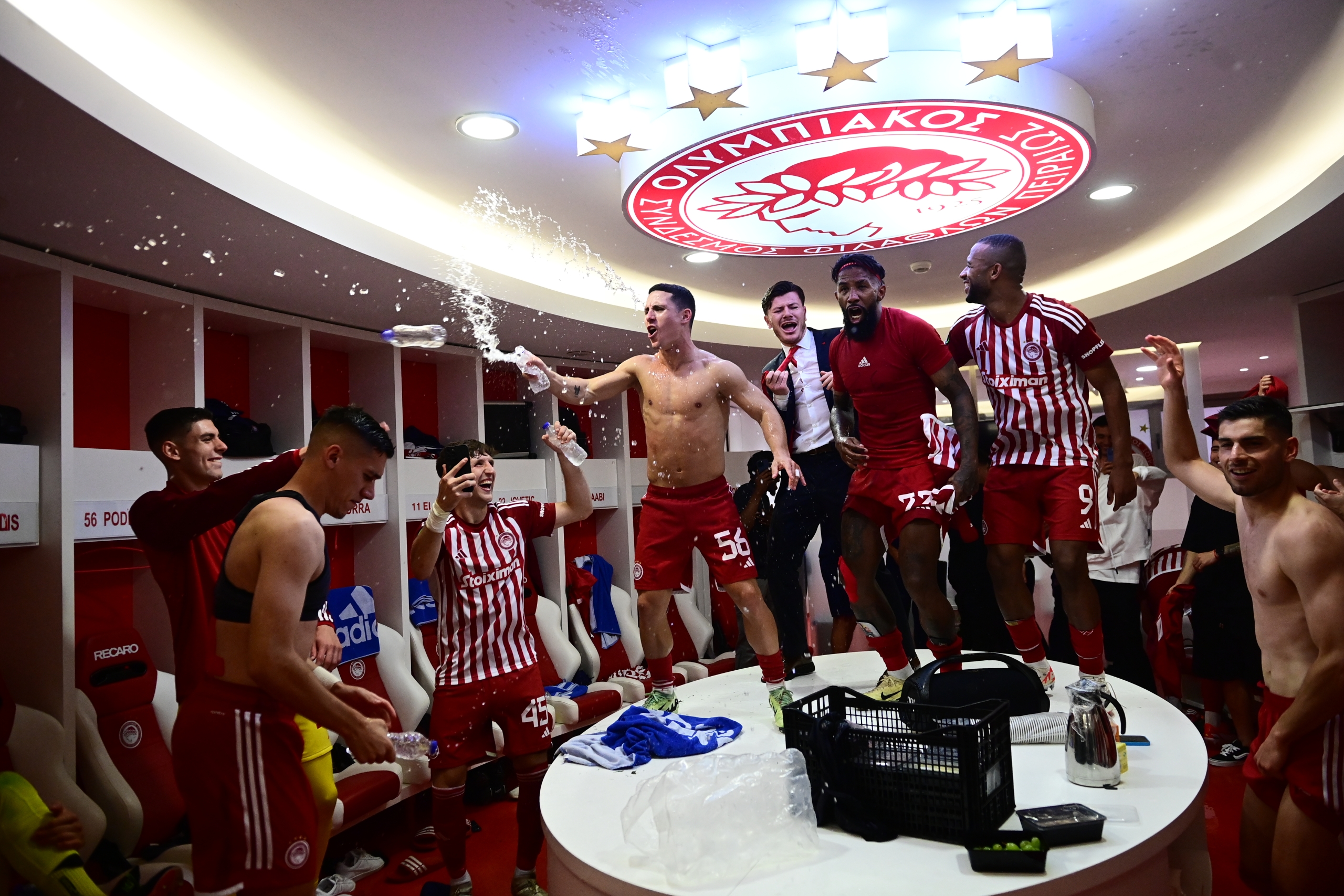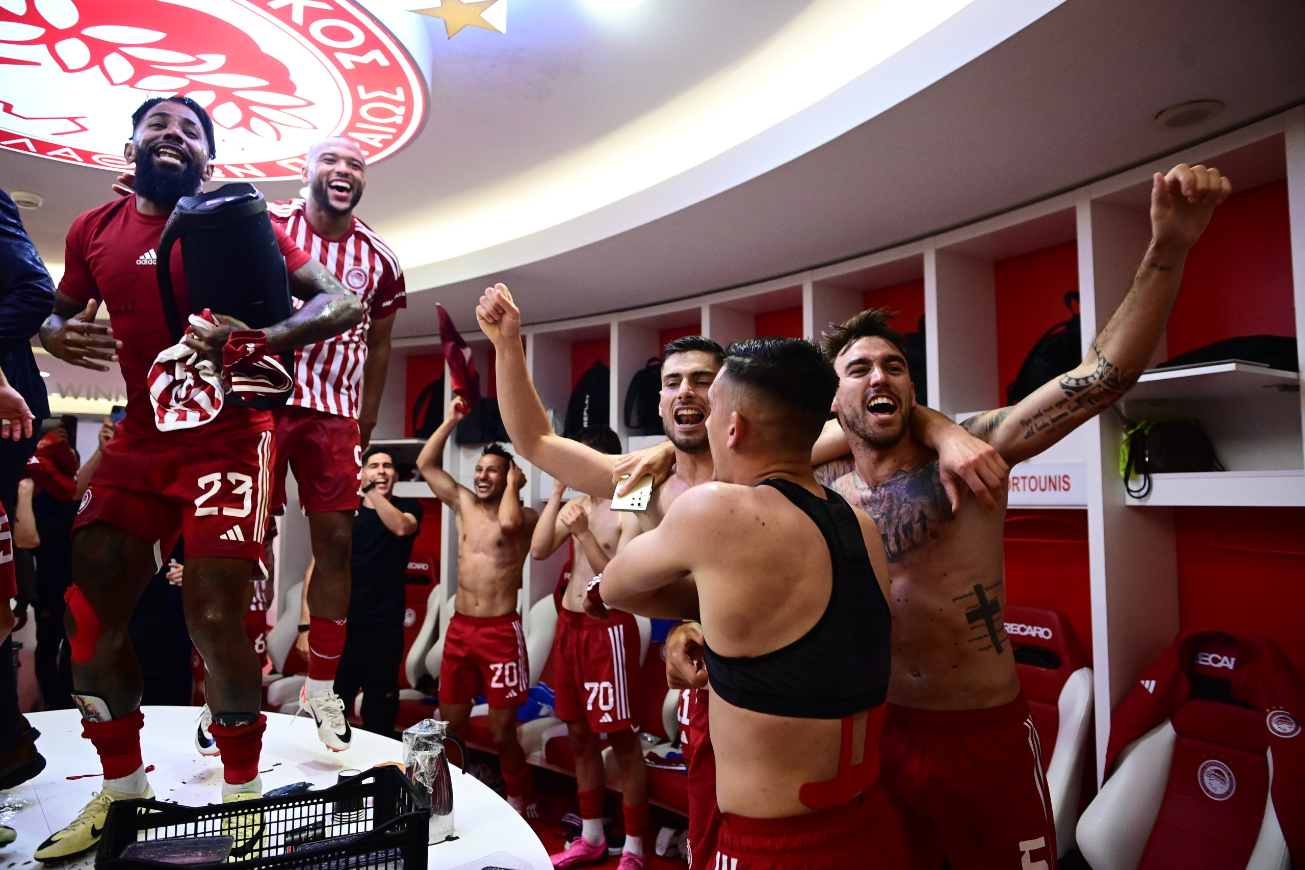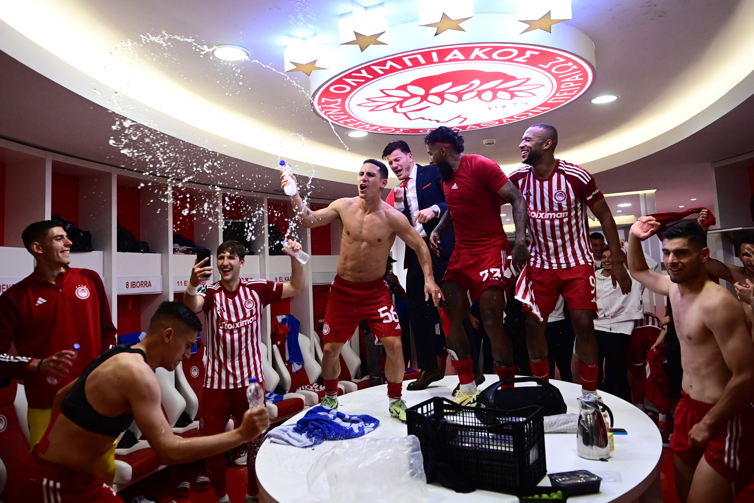 Όπως ήταν φυσιολογικό οι πανηγυρισμοί στα αποδυτήρια ήταν έξαλλοι, με τους παίκτες, αλλά και τον Βαγγέλη Μαρινάκη να χαίρονται με την… ψυχή τους την εκπληκτική ευρωπαϊκή σεζόν που κάνουν οι «ερυθρόλευκοι».
