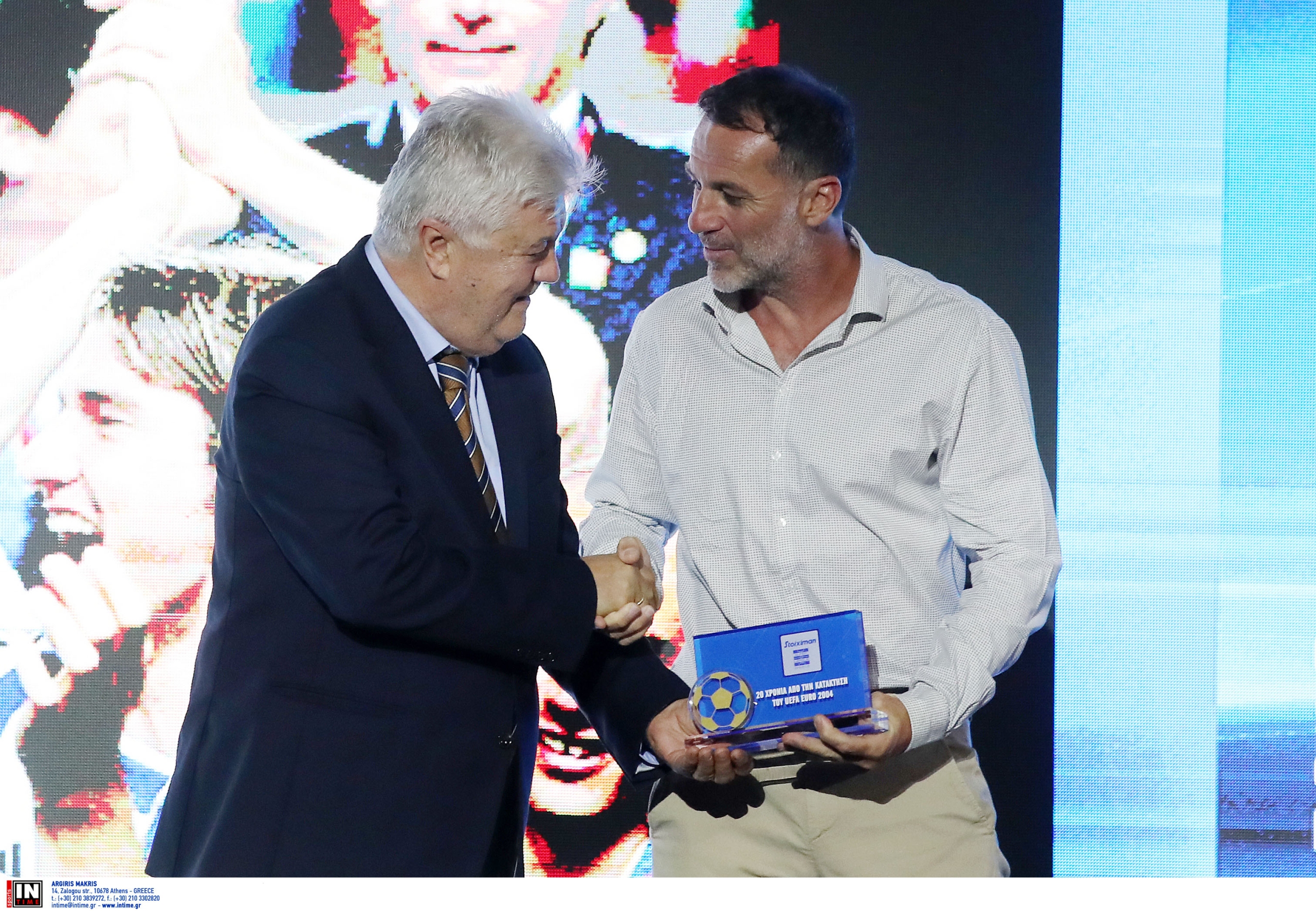 Ακολούθησε η τιμητική βράβευση προς την Εθνική Ομάδα του 2004, με τον τότε πρόεδρο Βασίλη Γκαγκάτση να παραδίδει το βραβείο προς τον Γιάννη Γκούμα, ο οποίος εκπροσώπησε όλη την «θρυλική» ομάδα που σήκωσε τη χώρα στα… ουράνια πριν από 20 χρόνια.