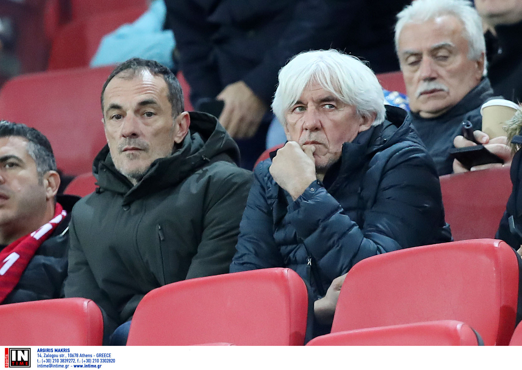 Ο προπονητής της «γαλανόλευκης» πήρε τη θέση του στο φαληρικό γήπεδο, με στόχο να αξιολογήσει Έλληνες ποδοσφαιριστές που συμμετέχουν στην αναμέτρηση.