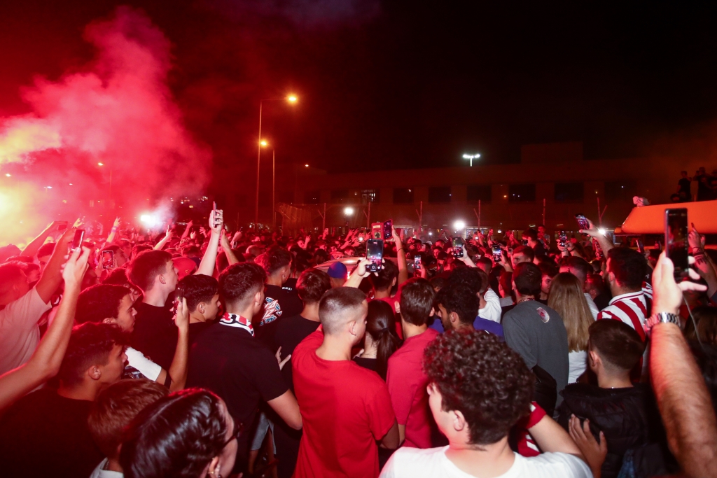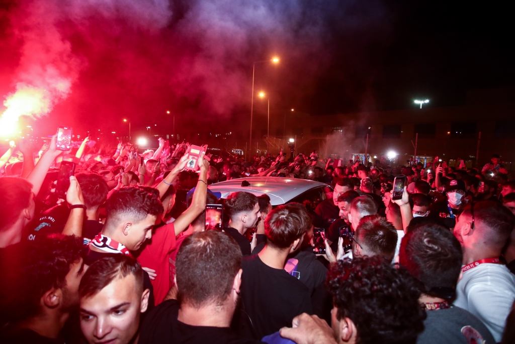 Οι φίλαθλοι τον υποδέχθηκαν με καπνογόνα, συνθήματα και τραγούδια, δείχνοντάς του για ακόμη μία φορά πόσο ξεχωριστή είναι η σχέση τους.