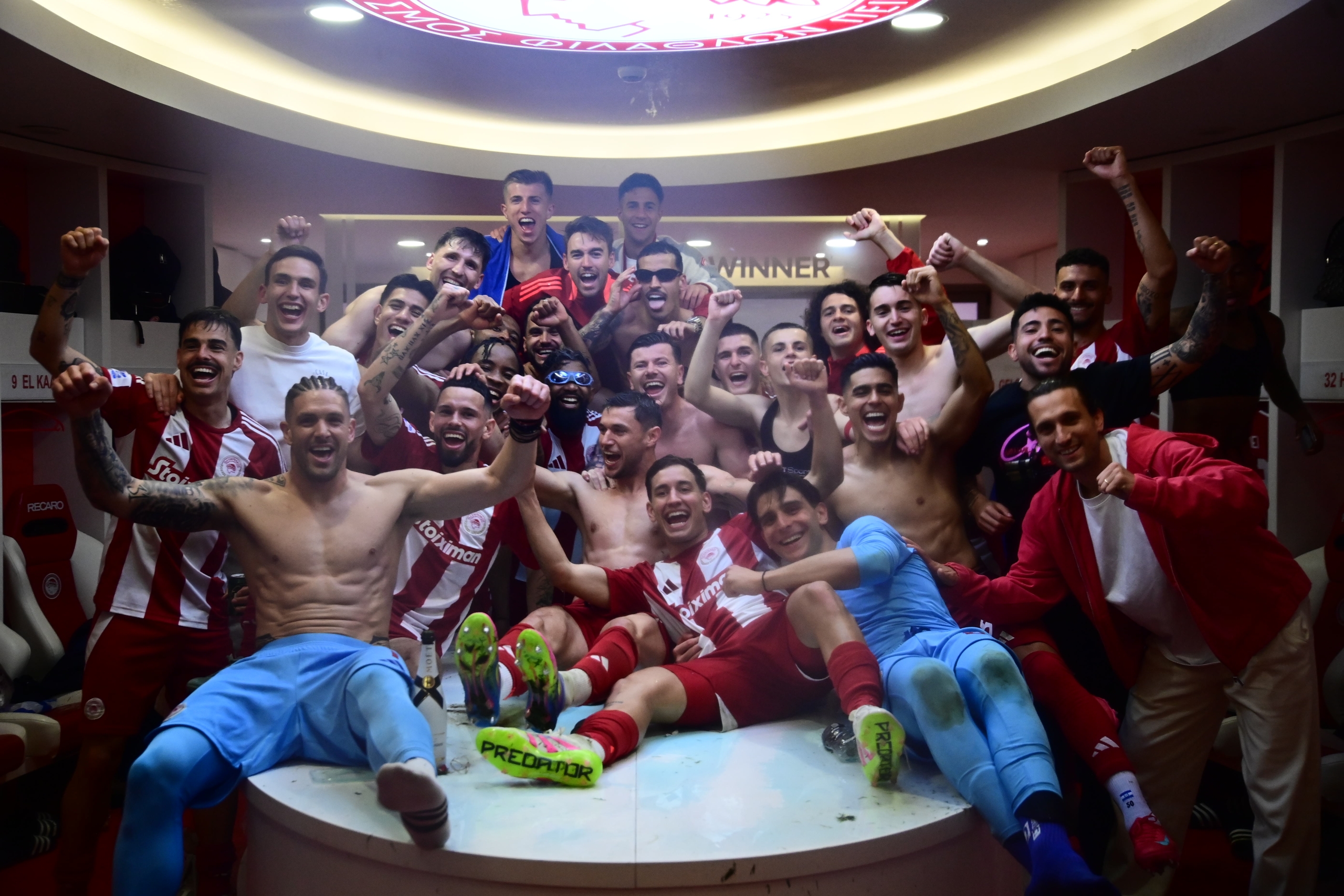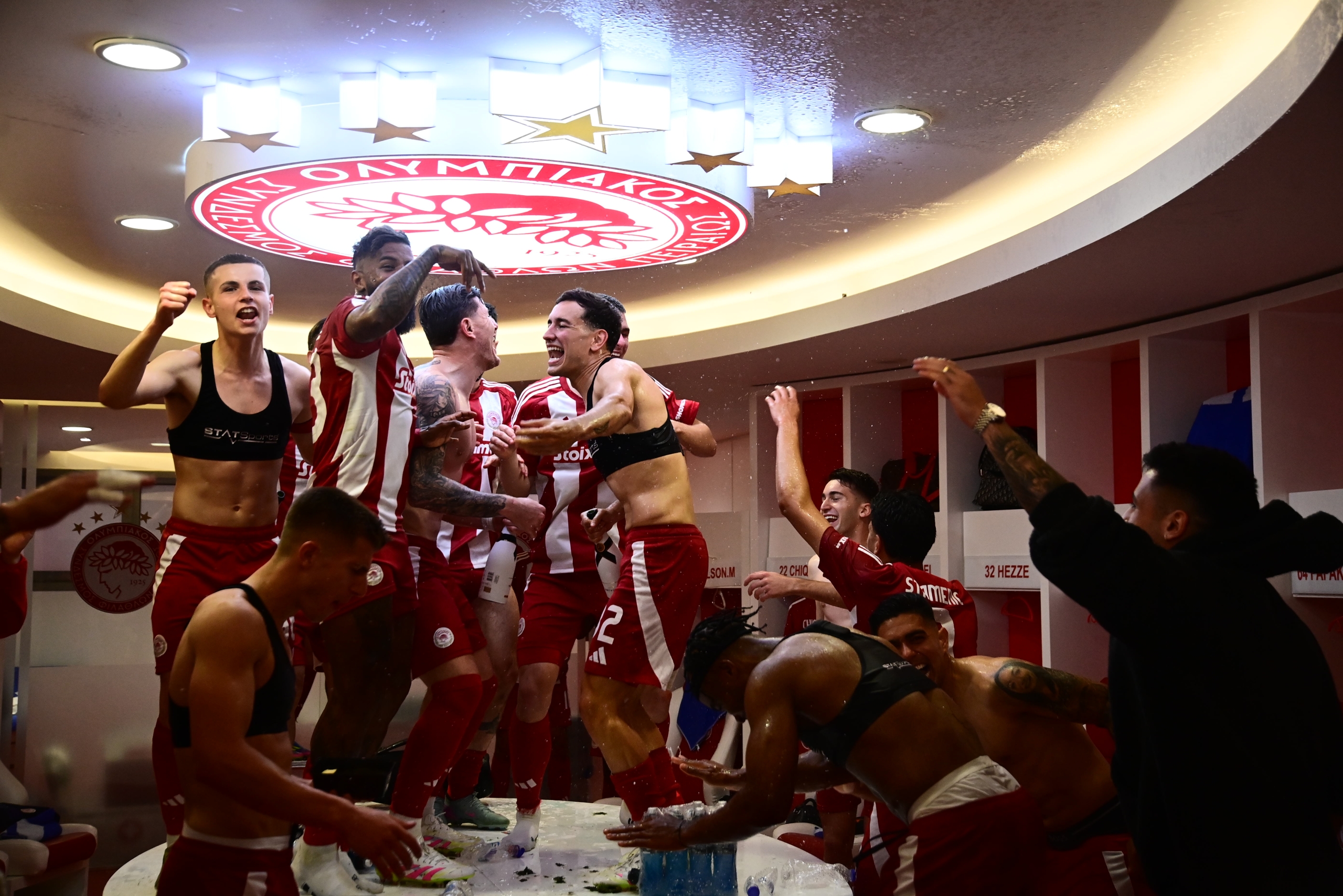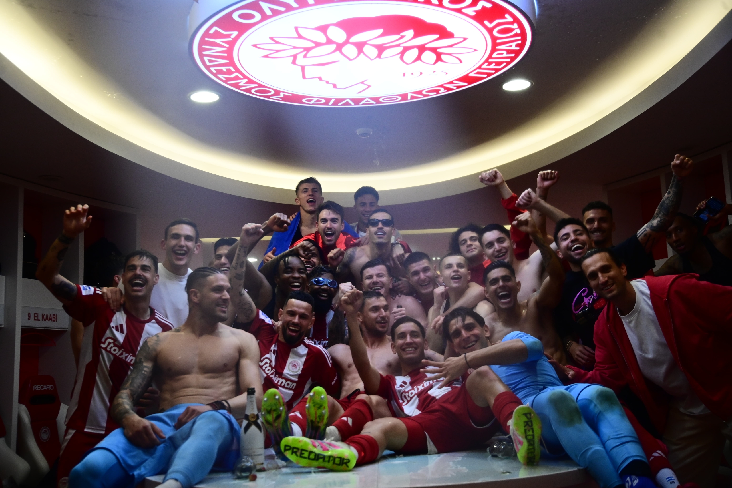 Οι «ερυθρόλευκοι» έστησαν το δικό τους πάρτι στα αποδυτήρια μετά τη λήξη του ντέρμπι με την Ένωση και πανηγύρισαν με την ψυχή τους την κατάκτηση του τίτλου.