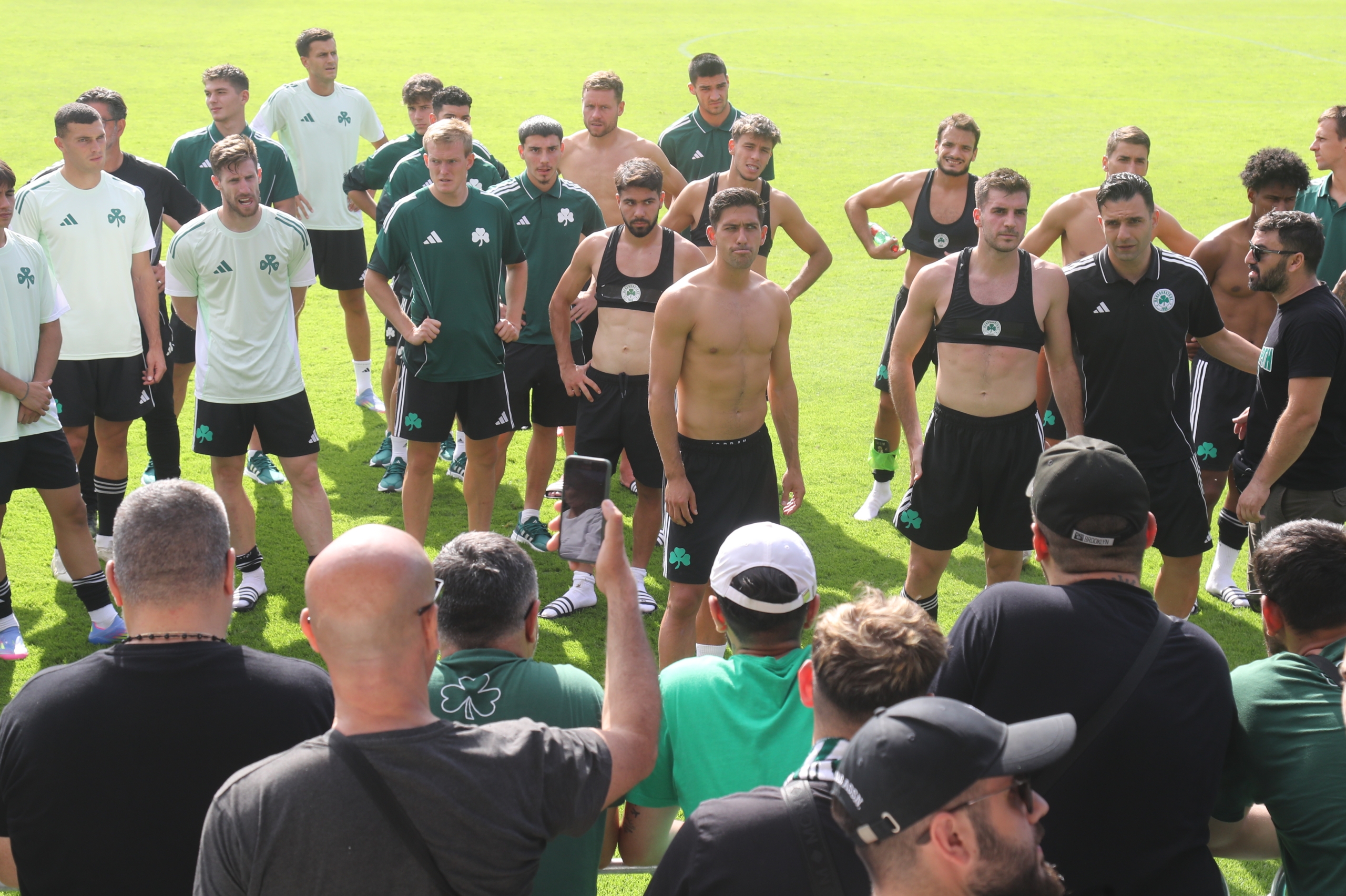 Μάλιστα, αρκετοί ήταν εκείνοι που μοίρασαν τις φανέλες τους στους «πράσινους» φιλάθλους, οι οποίοι ζήτησαν το πρωτάθλημα ενόψει της έναρξης της νέας σεζόν από τους παίκτες του Ρουί Βιτόρια.