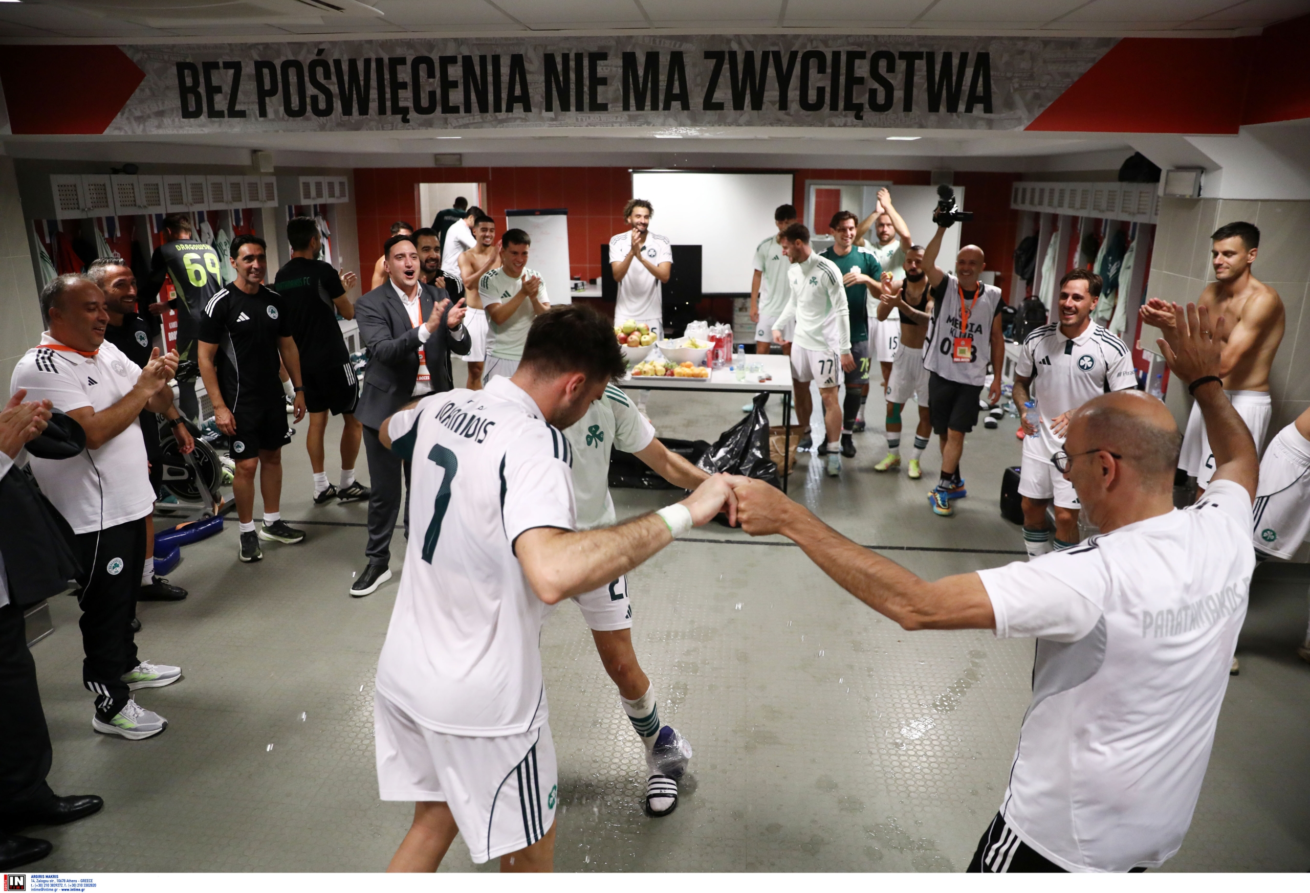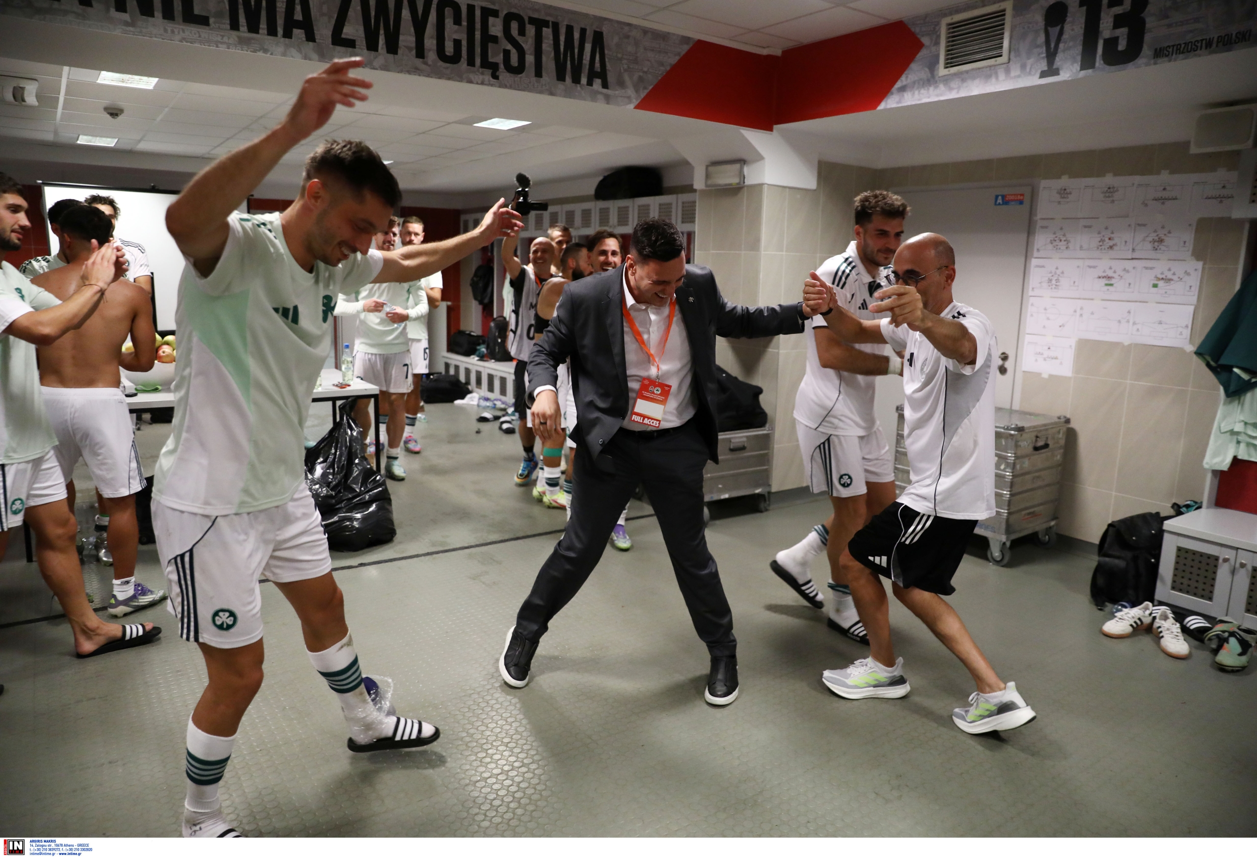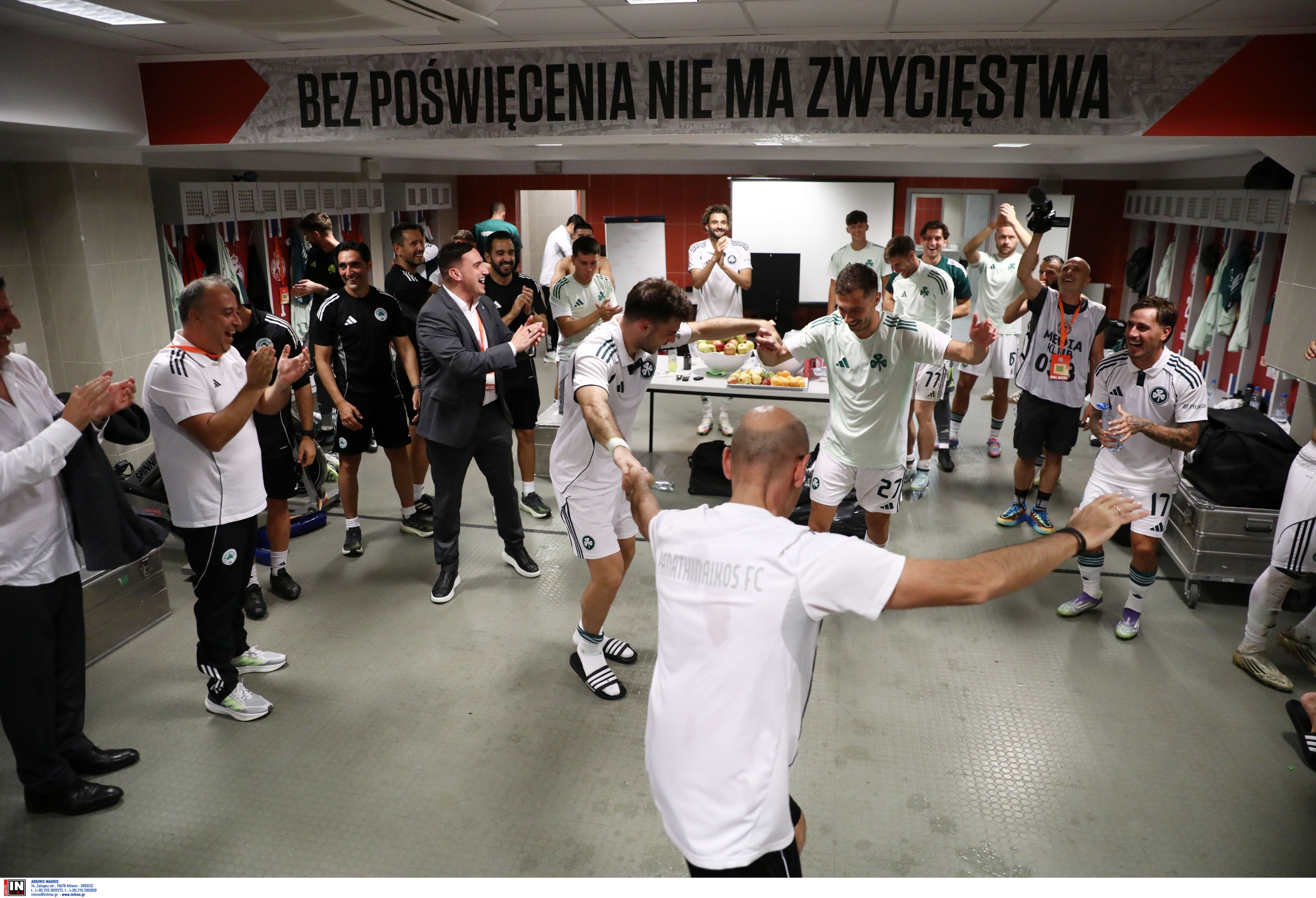 Στα αποδυτήρια, οι παίκτες πανηγύρισαν ξέφρενα την ιστορική πρόκριση, που τους εξασφαλίζει τη συμμετοχή τους στην ευρωπαϊκή σκηνή. Ένα κουβάρι χαράς και ενθουσιασμού, οι ποδοσφαιριστές αγκαλιάστηκαν, φωνάζοντας και διασκεδάζοντας με όλη τους την ψυχή, αποτυπώνοντας τη σημασία αυτής της νίκης για την ομάδα και τους φιλάθλους. Η στιγμή αυτή θα μείνει αξέχαστη στο «τριφύλλι» και στο ευρωπαϊκό ταξίδι που ξεκινά.