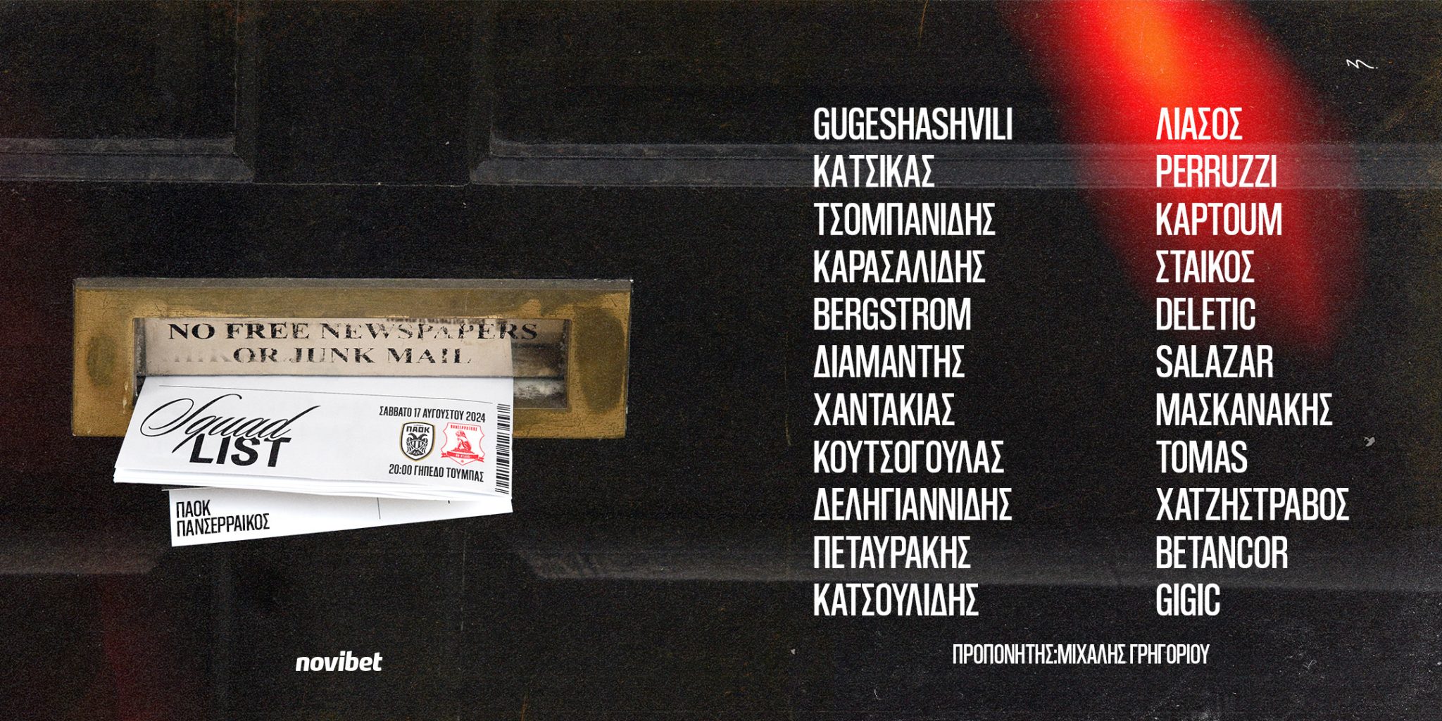 Γκουγκεσασβίλι, Κατσίκας, Τσομπανίδης, Μπέργκστρεμ, Χαντάκιας, Καρασαλίδης, Διαμαντής, Πεταυράκης, Δεληγιαννίδης, Κουτσογούλας, Κατσουλίδης, Στάϊκος, Λιάσος, Καπτούμ, Περούτσι, Χατζηστραβός, Τομάς, Ντέλετιτς, Σαλαζάρ, Μασκανάκης, Μπετανκόρ, Γκίγκιτς.