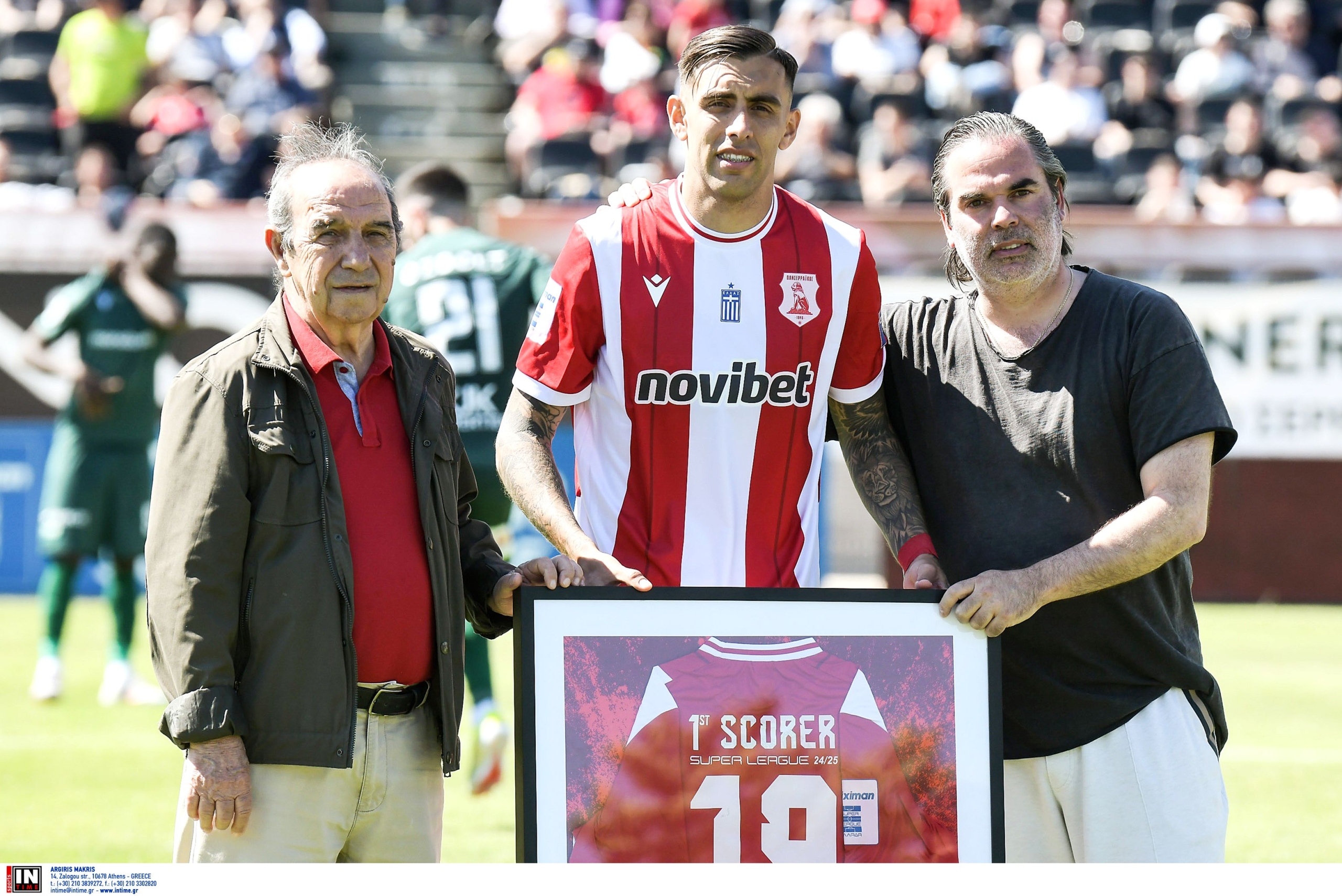 Στην ανάπαυλα η ομάδα βράβευσε τον Ισπανό φορ και για την ουσιαστική από τώρα ανάδειξή του σε πρώτο «κανόνι» της χρονιάς, ενώ εκείνος και μέσω μικροφώνου αποχαιρέτησε τον οργανισμό.