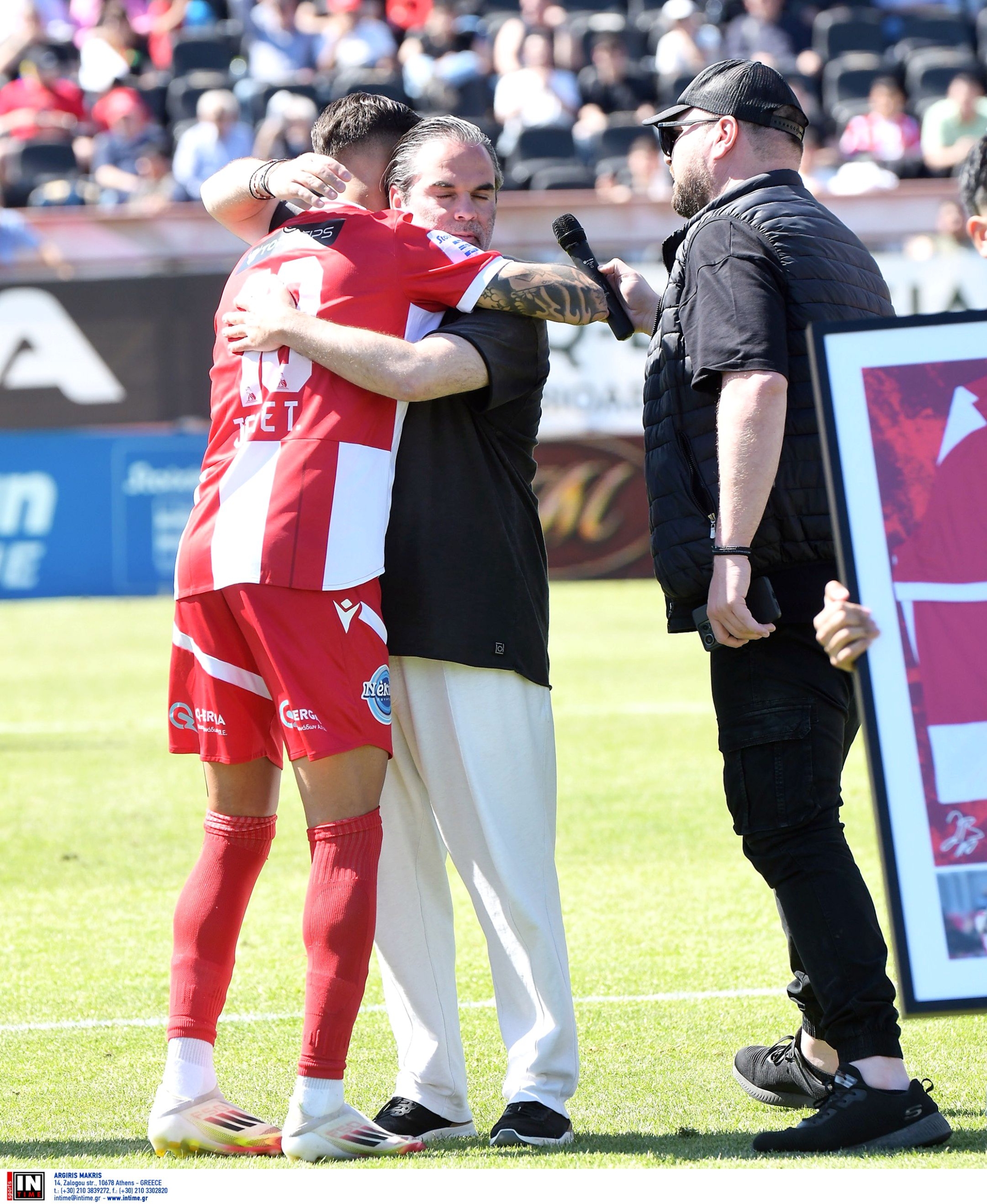 Παράλληλα ο Τάσος Καζίας, ισχυρός άνδρας της ομάδας, τον αγκάλιασε θερμά.