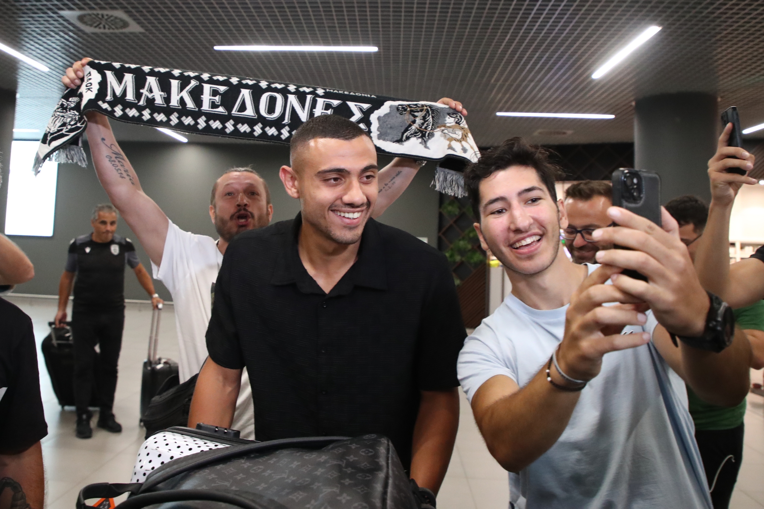 Ο Κρητικός φορ, «προσγειώθηκε» στο αεροδρόμιο «Μακεδονία» με πτήση από τη Φρανκφούρτη και κατά την έξοδό του δεν προχώρησε σε κάποια δήλωση, όπως άλλωστε αναμενόταν.