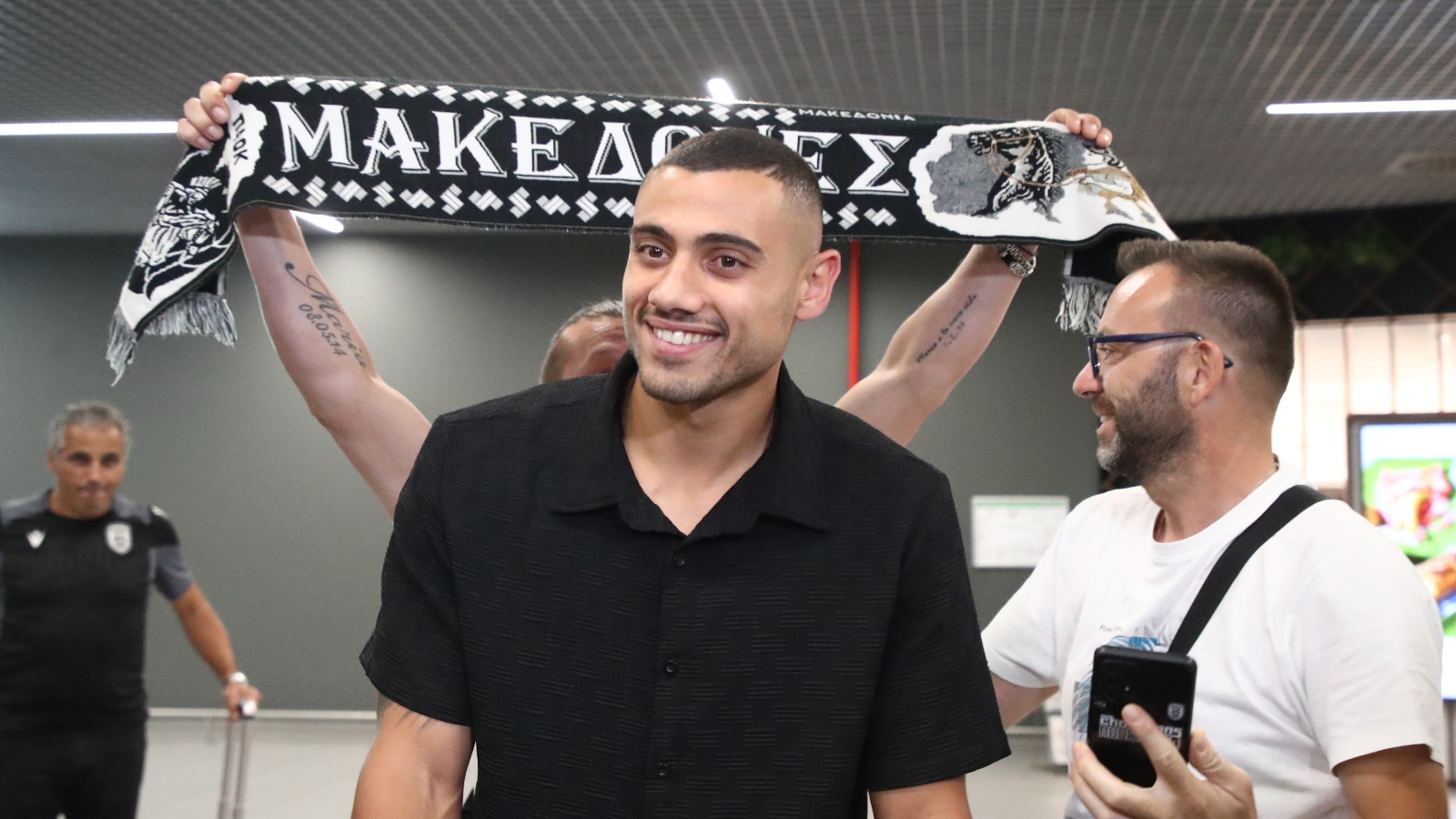 Ο Κρητικός φορ, «προσγειώθηκε» στο αεροδρόμιο «Μακεδονία» με πτήση από τη Φρανκφούρτη και κατά την έξοδό του δεν προχώρησε σε κάποια δήλωση, όπως άλλωστε αναμενόταν.
