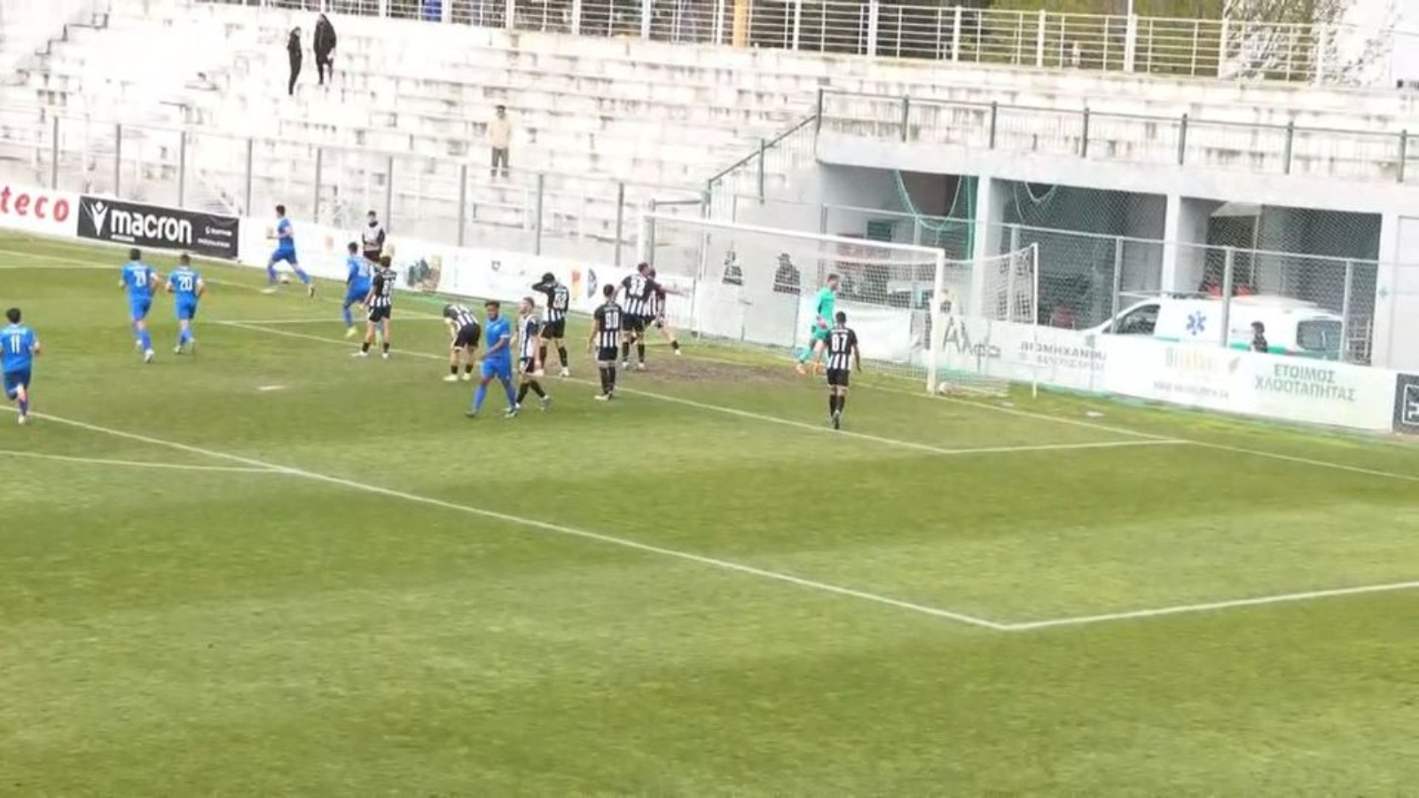 Οι Βολιώτες κατάφεραν να προηγηθούν στο ματς, στο 38΄. Συγκεκριμένα, οι φιλοξενούμενοι κέρδισαν ένα κόρνερ, την εκτέλεση ανέλαβε ο Σαλαμούρας, όπου έστειλε την μπάλα στο δεύτερο δοκάρι εκεί ο Προδρομίτης σηκώθηκε πιο ψηλά από όλους και με κεφαλιά νίκησε τον Μπαλωμένο για το 1-0.