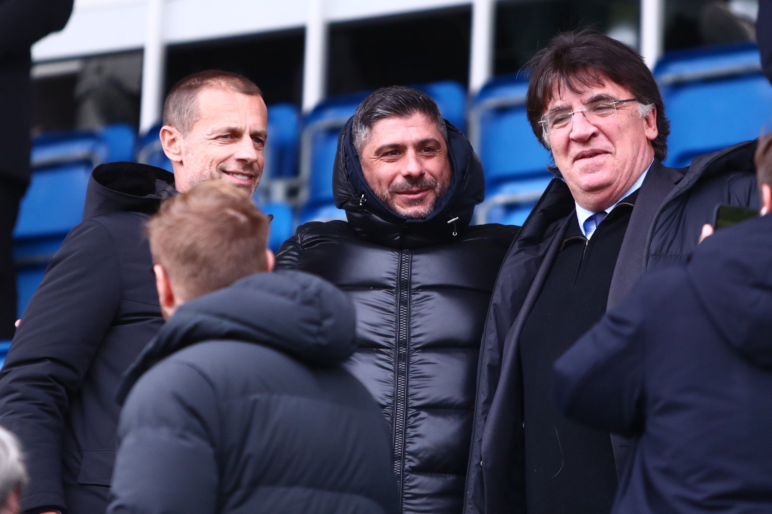 Μέσα σε αυτούς βρίσκεται ο στρατηγικός σύμβουλος και πρέσβης του Ολυμπιακού, Κριστιάν Καρεμπέ, ο γενικός γραμματέας της UEFA, Θεόδωρος Θεοδωρίδης, ο πρόεδρος της UEFA, Αλεξάντερ Τσέφεριν, ο Μιχάλης Σιφάκης, ο Ράφα Μπενίτεθ και ο Πορτογάλος «θρύλος» Λουίς Φίγκο.