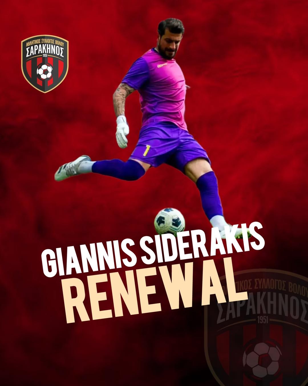 «Ο Α.Σ. Σαρακηνός ανακοινώνει την ανανέωση συνεργασίας με τον πολύπειρο τερματοφύλακα Γιάννη Σιδεράκη.