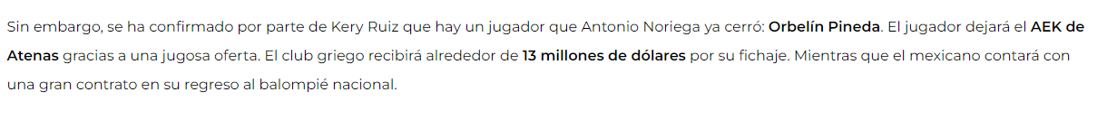 Ακόμη, σύμφωνα με το ίδιο δημοσίευμα ο παίκτης θα υπογράψει ένα μεγάλο συμβόλαιο με τον μεξικάνικο σύλλογο μόλις επιστρέψει από τις διακοπές του.