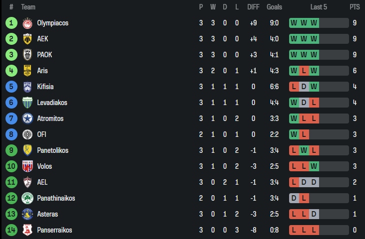 Ο «δικέφαλος» του βορρά με αυτή τη νίκη, συνέχισε με το απόλυτο στο φετινό πρωτάθλημα και μοιράζεται την κορυφή της βαθμολογίας, μαζί με την ΑΕΚ που έκαμψε την αντίσταση του μαχητικού Λεβαδειακού με 1-0, στην Βοιοτία και με τον Ολυμπιακό, που είχε εύκολο έργο, απέναντι στον Πανσερραϊκό, σε παιχνίδι που διεξήχθη το Σάββατο 13/9 (5-0).