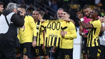 Μετά τη νίκη επί του Βόλου ο Πέτρος Μάνταλος αποθεώθηκε για τις 400 εμφανίσεις του με την ΑΕΚ και ο Μάριος Ηλιόπουλος του έκανε ξεχωριστό δώρο