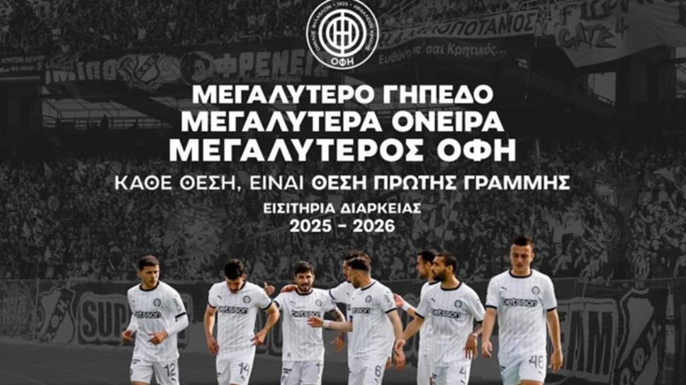 STOIXIMAN SUPERLEAGUE «Μεγαλύτερο γήπεδο, μεγαλύτερα όνειρα, μεγαλύτερος ΟΦΗ» Στη διάθεση του κόσμου, τα εισιτήρια διαρκείας του ΟΦΗ 17/07/25 · 18:45