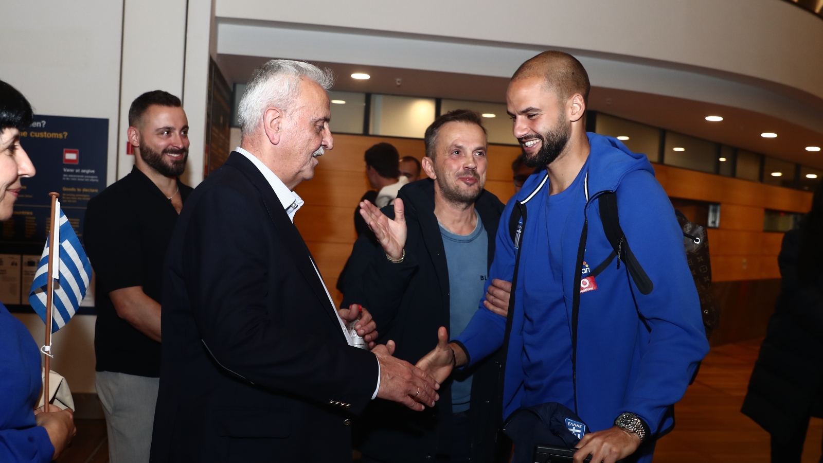 Στο αεροδρόμιο, αρκετοί Έλληνες φίλαθλοι υποδέχτηκαν την αποστολή, δίνοντάς της το πρώτο μήνυμα στήριξης ενόψει της μεγάλης μάχης. Οι παίκτες έστειλαν το δικό τους μήνυμα στον κόσμο: «Μπορούμε να τα καταφέρουμε, ήρθε η ώρα για ένα μεγάλο αποτέλεσμα. Αφήνουμε πίσω την ήττα με τους Σκωτσέζους», είπαν οι ποδοσφαιριστές του Ιβάν Γιοβάνοβιτς στον κόσμο που τους υποδέχτηκε.