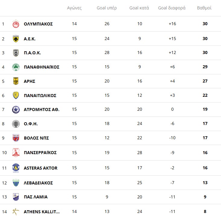 Βαθμολογία: «Έπιασε» Ολυμπιακό και ΑΕΚ ο ΠΑΟΚ – Σε απόσταση… αναπνοής ο Παναθηναϊκός