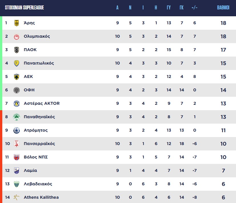 Ο Ολυμπιακός με τη νίκη του επί του Πανσερραϊκού με 2-1 «έπιασε» τον Άρη στη βαθμολογία, στο παιχνίδι που άνοιξε την… αυλαία της 10ης αγωνιστικής της Stoiximan Super League.