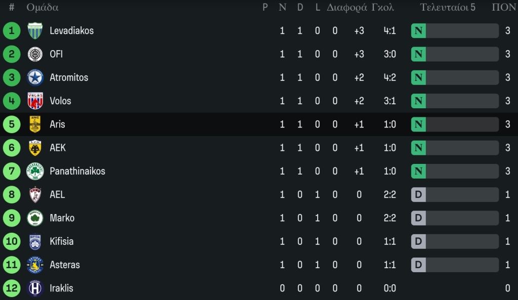 Η ΑΕΚ, ο Παναθηναϊκός και ο Άρης μπήκαν με το δεξί, κατακτώντας πολύτιμες νίκες και τρεις βαθμούς, ενώ ο ΠΑΟΚ γνώρισε βαριά ήττα στη Λιβαδειά, χάνοντας με το εντυπωσιακό 4-1 από τον Λεβαδειακό.