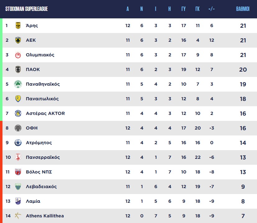Η αναμέτρηση μεταξύ του Άρη και του Βόλου έκλεισε το πρόγραμμα του Σαββάτου (23/11) για την 12η αγωνιστική της Stoiximan Super League. Οι Θεσσαλοί πήραν μεγάλο διπλό επικρατώντας 1-0.