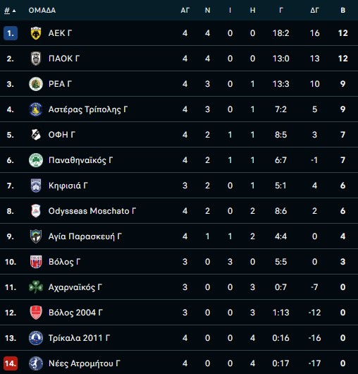 Ο ΠΑΟΚ διατήρησε το αήττητο, συντρίβοντας εκτός έδρας τα Τρίκαλα με 4-0, χάρη σε δύο γκολ της Γκατσανίτσα, ενώ ο Αστέρας Τρίπολης πήρε σπουδαίο διπλό με 2-1 κόντρα στην Αγία Παρασκευή, με τη Σπυριδωνίδου να σημειώνει το καθοριστικό τέρμα στο φινάλε.